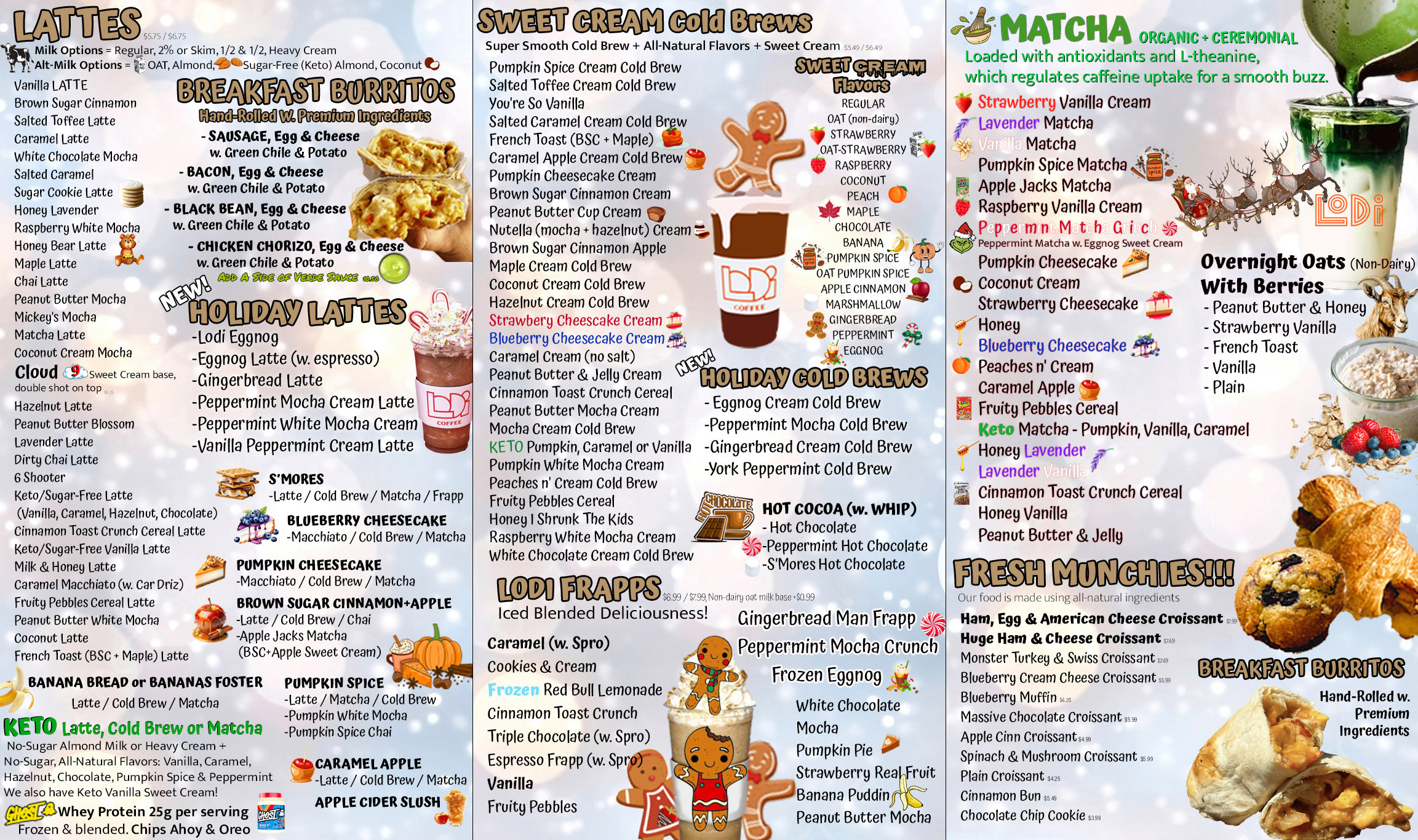 At Lodi Coffee, we build our drinks from the ground up with the very best ingredients, fresh prime-sourced coffee, ceremonial grade matcha, and accouterments made from high-quality, all-natural (organic, if we can) ingredients.